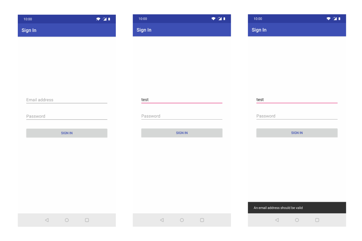 R.id.signIn); - "An email address should be valid" message should be displayed (string const: