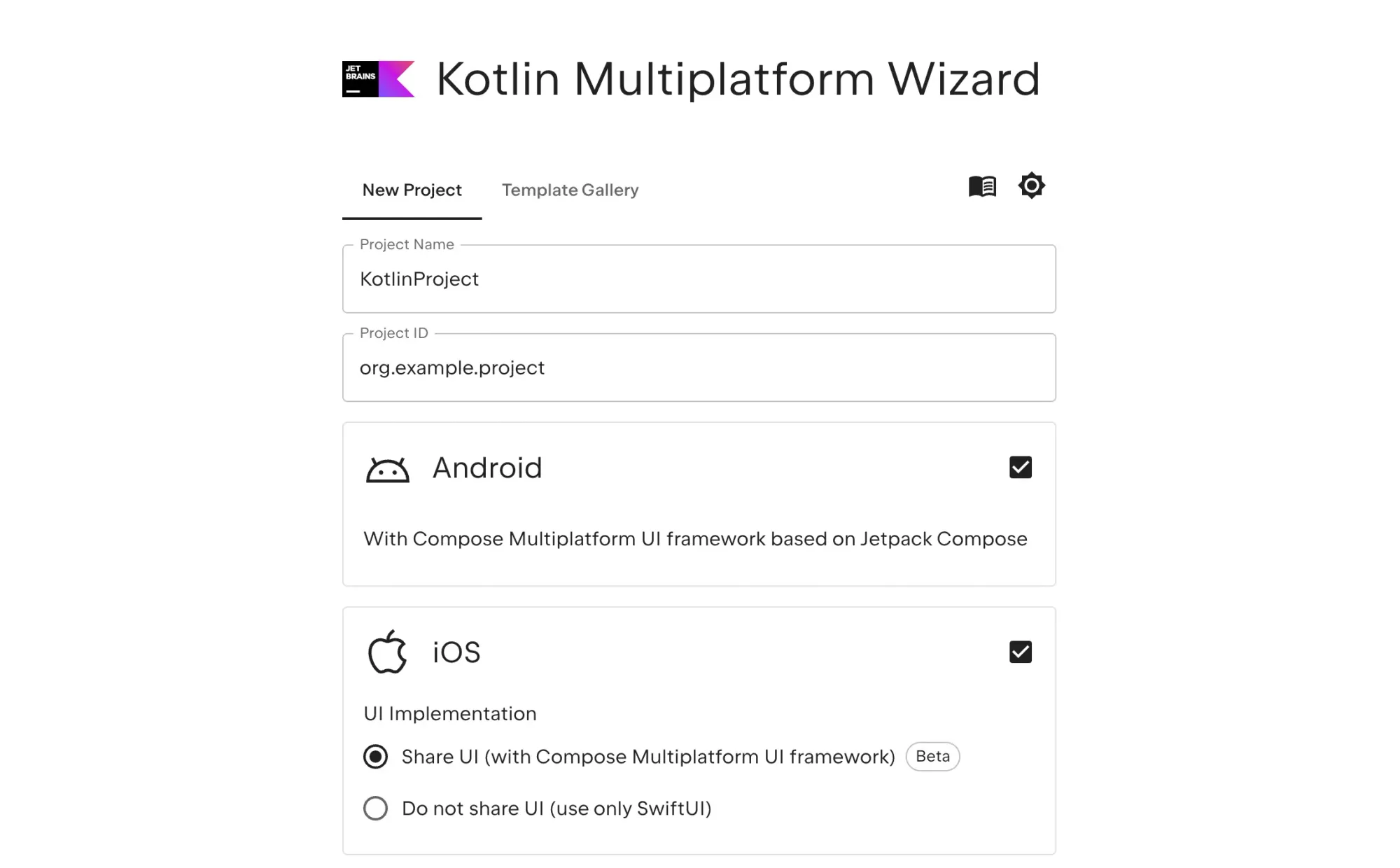 To create the "Vertical Bar Chart", let's start with creating the generating Compose Multiplatform project, using the Kotlin Multiplatform Wizard website.