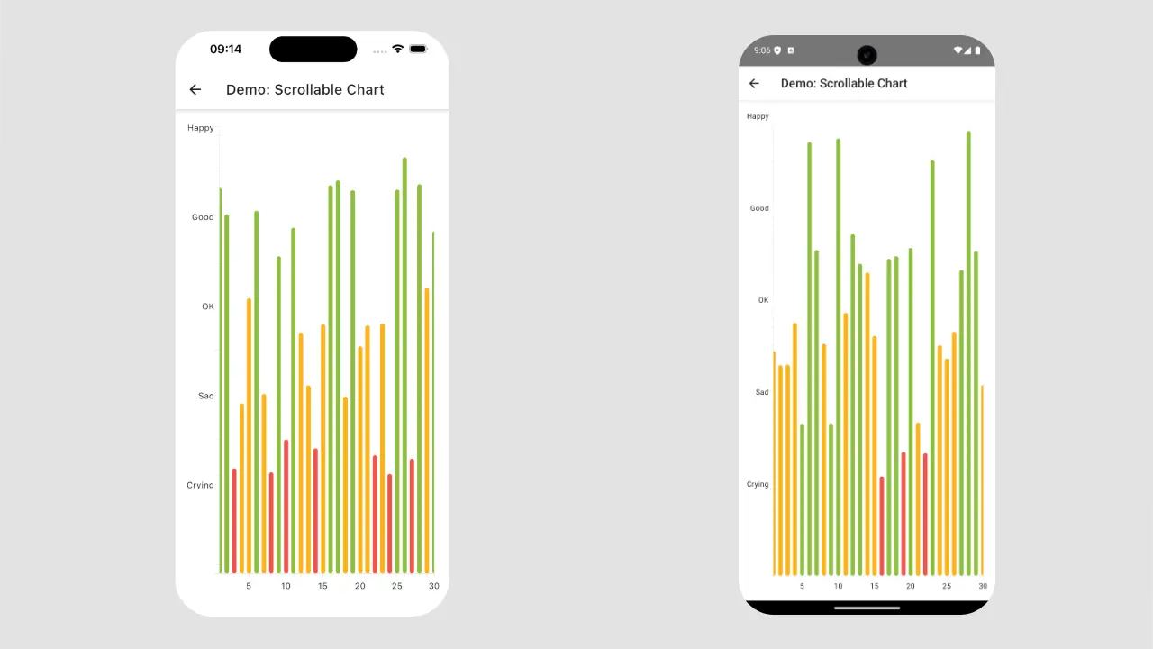 When you add the DailyMoodChart to the screen, you’ll notice that there is too much data. As a result, the chart becomes almost unreadable on mobile devices.