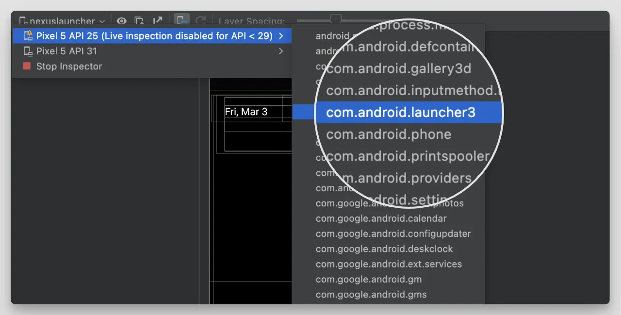 We can explore the view tree of different launchers use the "LayoutInspector" tool and selecting the launcher processes: