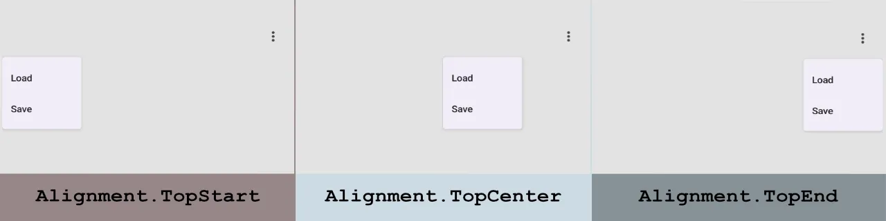 Let's take a look at the position of the DropDownMenu when the parent layout uses different alignment options.