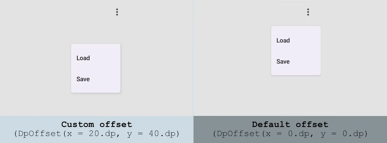 To customize the position of the DropdownMenu pop-up on the screen, we can use the offset property.