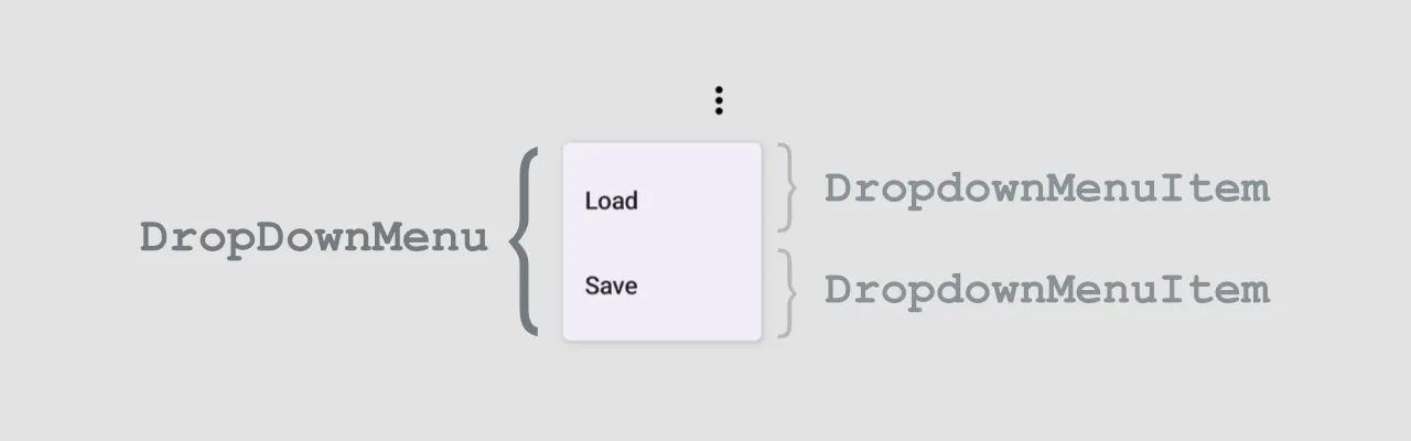 Let's create a composable function with a "More" menu. The DropDownMenu will appear when we click on the "More" menu icon. Every DropdownMenu component may have multiple DropdownMenuItem options.