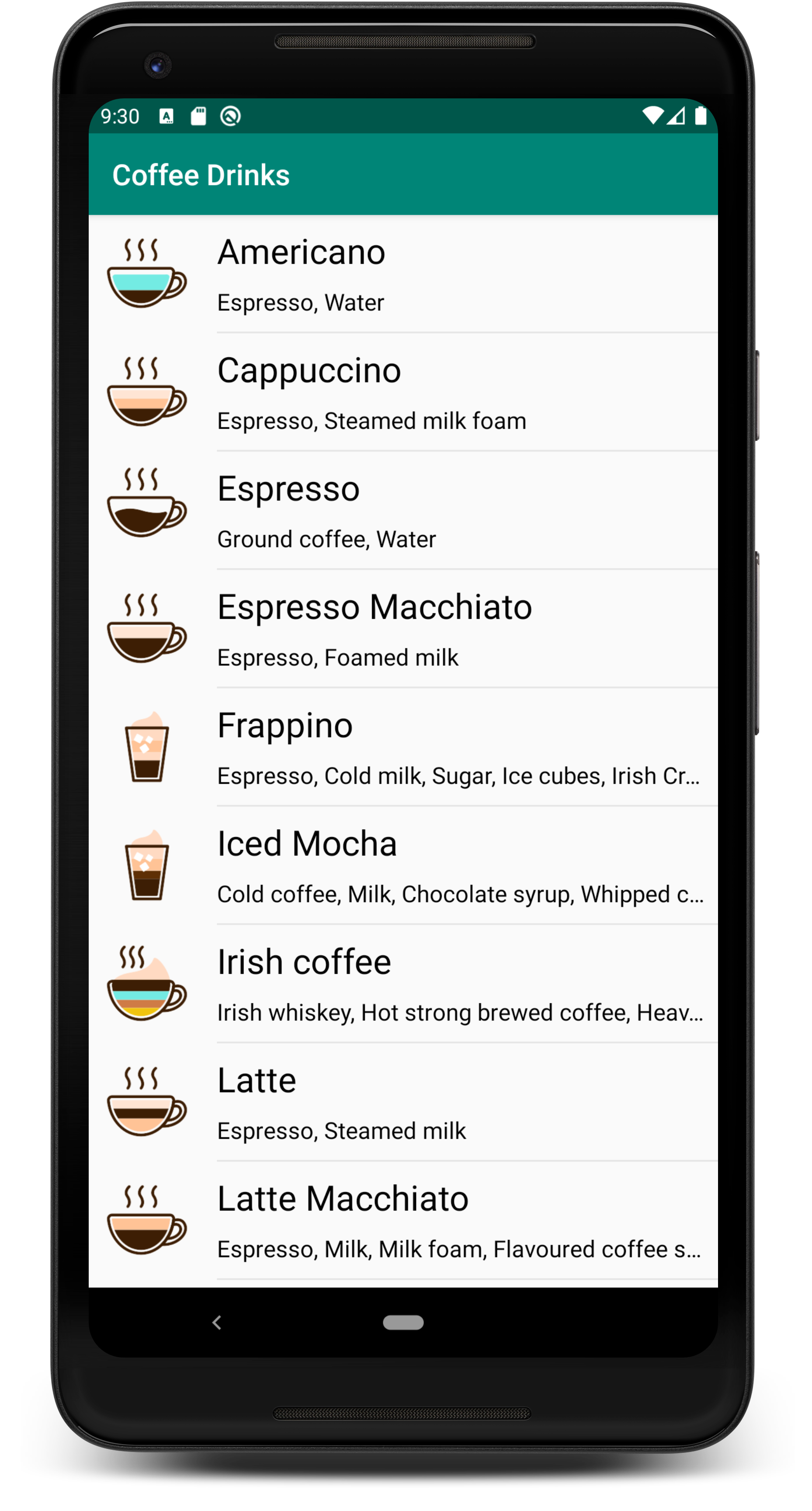 Let's try to create a simple application with a static list of coffee drinks.