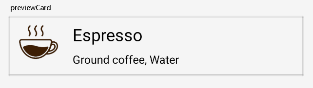Let's create a composable function for rendering a coffee drinks item and a function with @Preview annotation for checking the result inside IDE without recompiling the application: