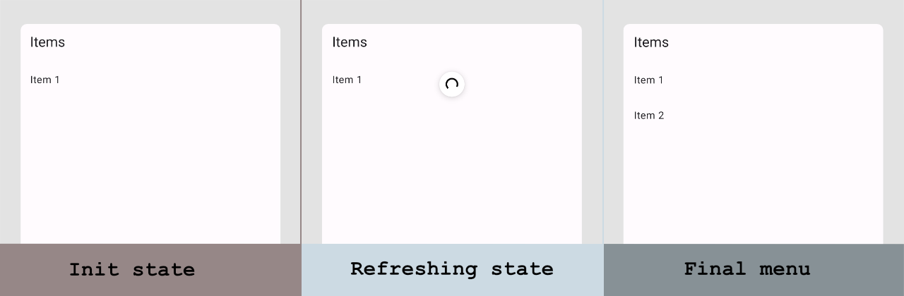 We will test a screen that shows "Item 1" by default, and "Item 1" and "Item 2" after a pull to refresh action.