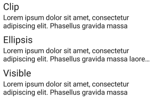 - Visible (When overflow is visible, text may be rendered outside the bounds of the composable displaying the text)