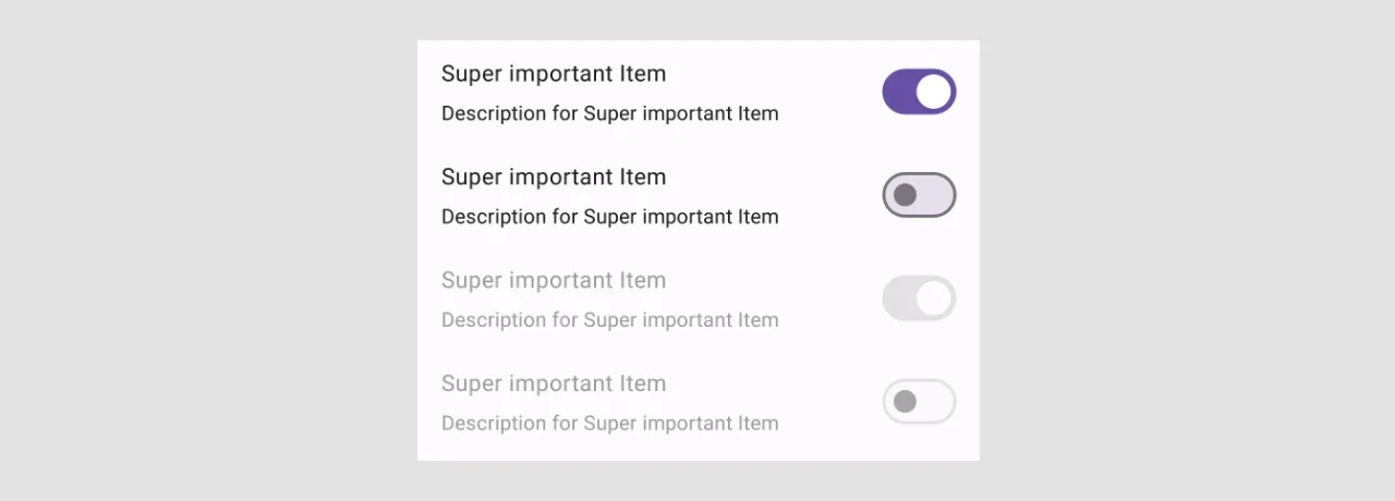 The content of this article is based on the Switch component from the "Material 3" library.More information about differences between the Switch components in "Material" and "Material 3" libraries can be found here.