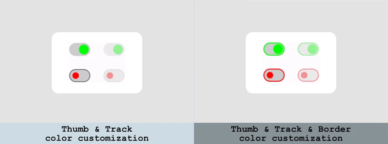 We can customize the colors for both enabled and disabled states for the following parts of the Switch component: