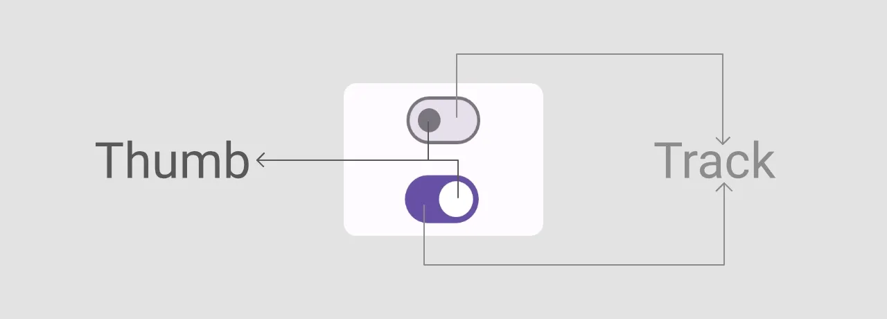 The Switch component has two parts: thumb and track. The "Material 3" implementation of this component allows us to customize both parts.