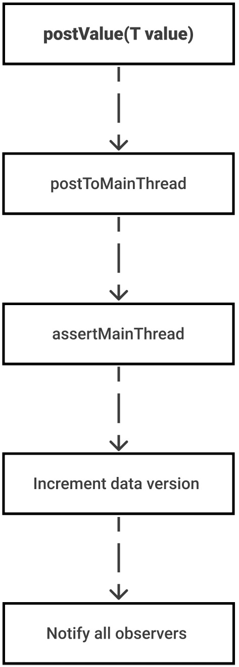 Let's take a look at the internal implementation of available methods for changing data inside the LiveData object.